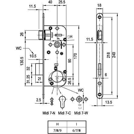 Bevésőzár MIDI 7 kulcsos bliszt.