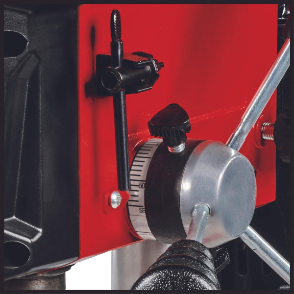 Az Einhell TC-BD 450 oszlopos fúrógép egy precíziós szerszámgép, amellyel még a legkülönlegesebb feladatok elvégzése sem jelenthet akadályt: segítségével hajszálpontos furatokat készíthet, akár fával, akár fémmel dolgozik. A 450 watt teljesítménynek és az 5 különböző fokozatba állítható fordulatszámnak köszönhetően szinte bármilyen anyaggal megbirkózik. A mélységütköző mindig pontos és gyors fúrást tesz lehetővé. A maximális furatmélység 50 milliméter. A mindennapi munkák során használt normál méretű fúrószárakat könnyedén befogathatja a robusztus fogaskoszorús tokmányba. A hosszú élettartamúra tervezett golyóscsapágyas fúróorsó egyszerű munkavégzést tesz lehetővé. A forgatható, dönthető és fokozatmentesen állítható munkaasztal rendkívül rugalmas munkavégzést biztosít. A gumírozott háromágú előtolókar mindig precíz és könnyű munkavégzést szavatol. A biztonságról a lehajtható forgácsvédelem, valamint a nullfeszültség-kioldóval ellátott BE/KI kapcsoló gomb gondoskodnak. Ez utóbbi megoldás biztosítja, hogy egy esetleges áramkimaradást követően a készülék ne indulhasson el véletlenszerűen.