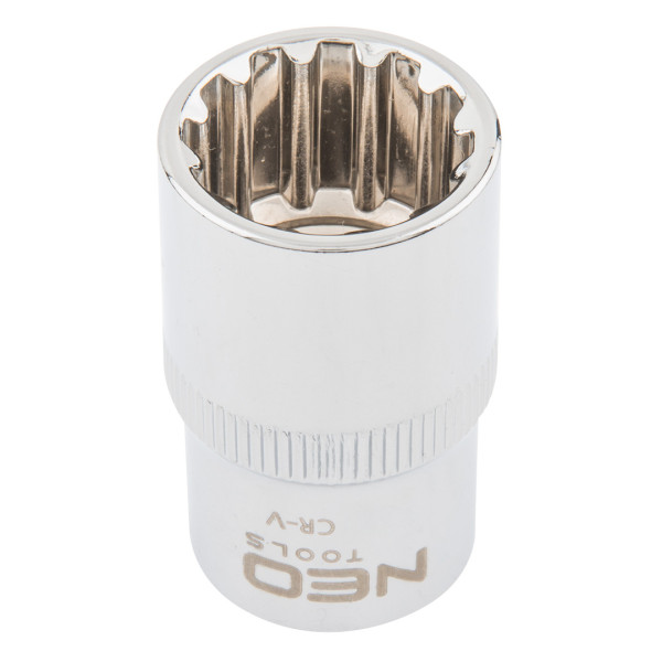 A NEO 1/2"-os Spline dugókulcs króm-vanádium acélból készül, a DIN 3124 szabványnak megfelelően. A dugókulcs szferikus kialakítása igen széles alkalmazási lehetőségeket biztosít, lehetővé téve a Torx, a Spline, a 12-lapú, a metrikus, a colos és a négylapú csavarok kicsavarását is. A szerszám minőségét bizonyítja a TÜV tanúsítvány és a gyártó által nyújtott 25 éves jótállás. A NEO márka a professzionális igényeket is kielégíti.
