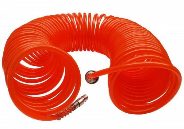 Spirál légtömlő 10m 6x8mm Spirálos tömlő 10 m-es hosszal, alkalmas pneumatikus kompresszorokhoz és pneumatikus szerszámokhoz. A spirál alakja minimalizálja összegabalyodást, használata és tárolása egyszerű. A tömlő ellenálló poliuretánból készült, gyorscsatlakozókban végződik. Technikai paraméterek:Hossz: 10 mBelső átmérő 6 mmKülső átmérő 8 mmGyorscsatlakozók